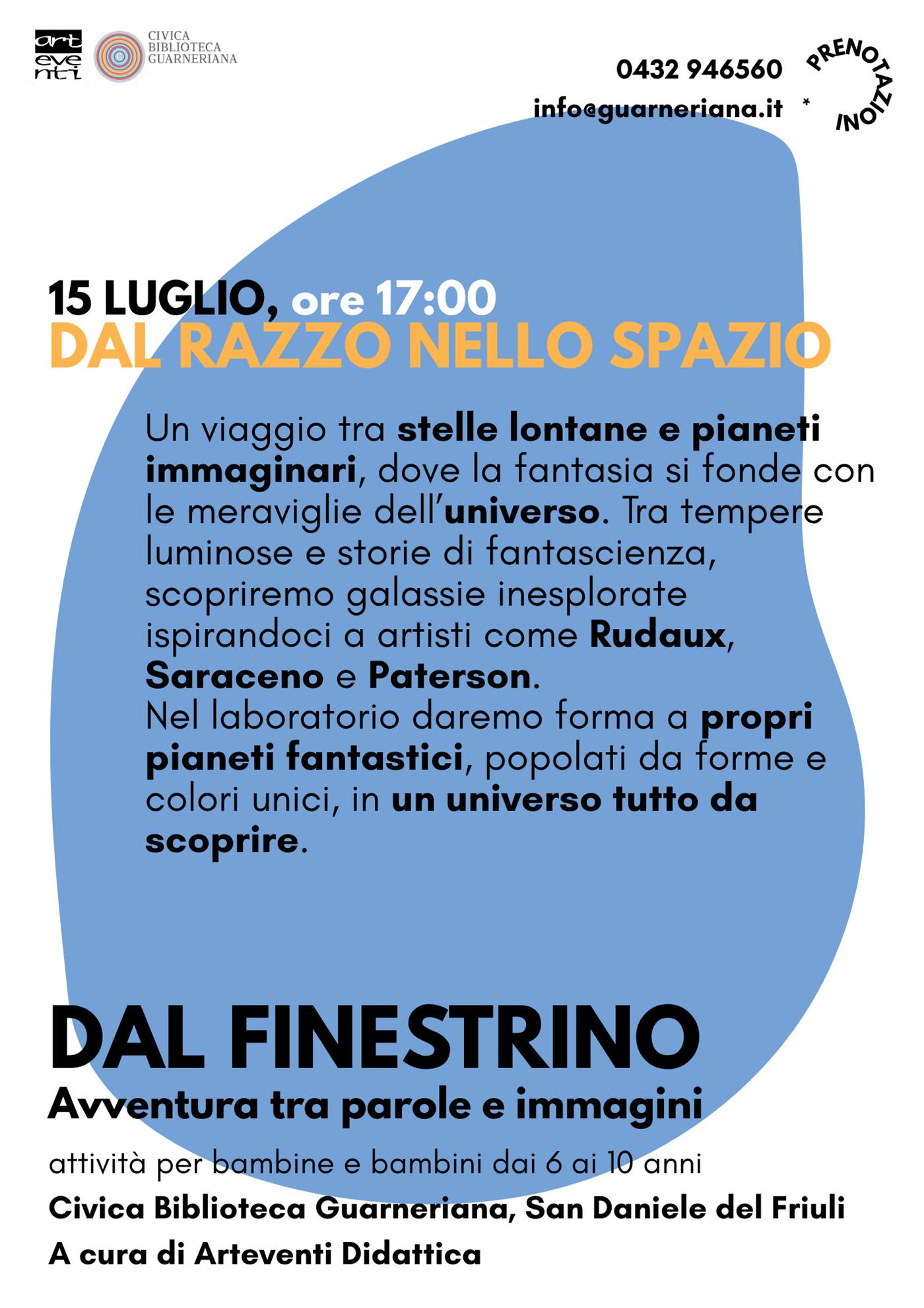 Un viaggio tra stelle lontane e pianeti immaginari, dove la fantasia si fonde con le meraviglie dell’universo. Tra tempere luminose e storie di fantascienza, scopriremo galassie inesplorate ispirandoci a artisti come Rudaux, Saraceno e Paterson. Nel laboratorio daremo forma a propri pianeti fantastici, popolati da forme e colori unici, in un universo tutto da scoprire.