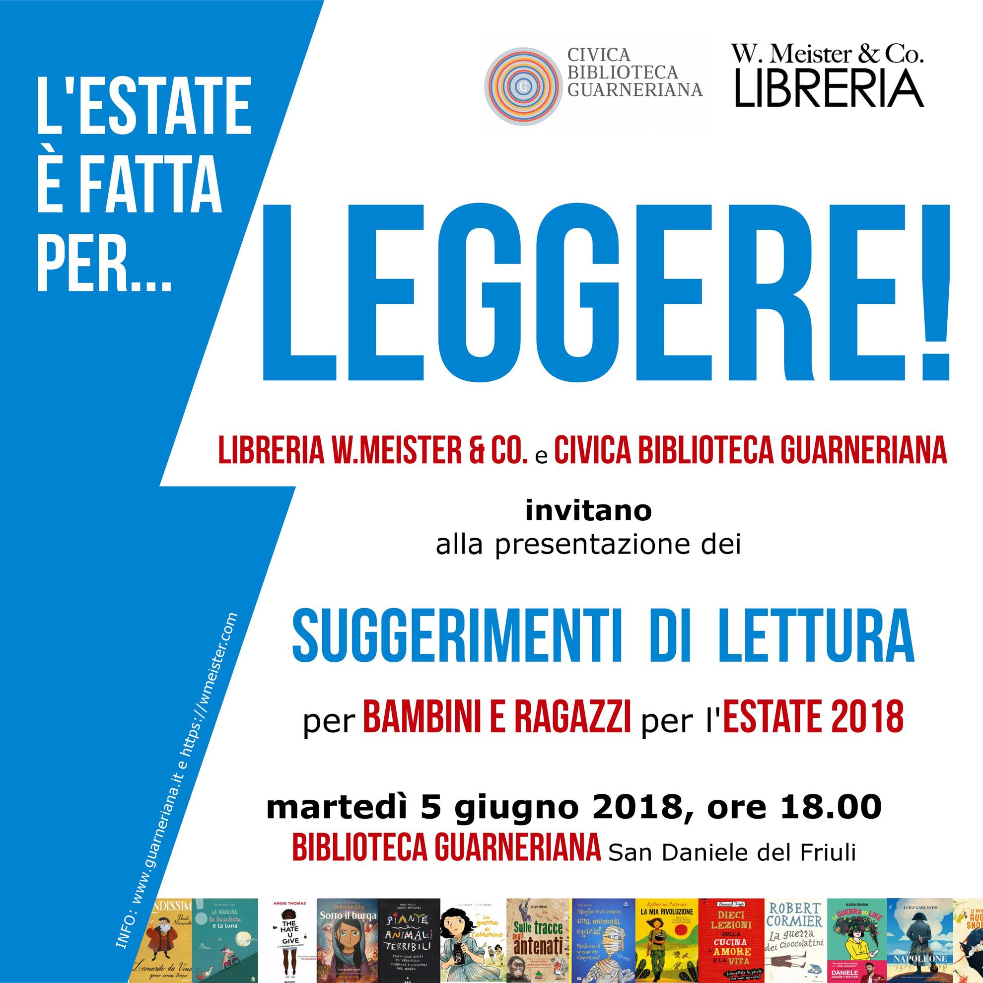 Biblioteca Guarneriana e Libreria W.Meister & Co. uniscono le forse per proporre accattivanti suggerimenti di lettura per bambini e ragazzi, per l'estate 2018.