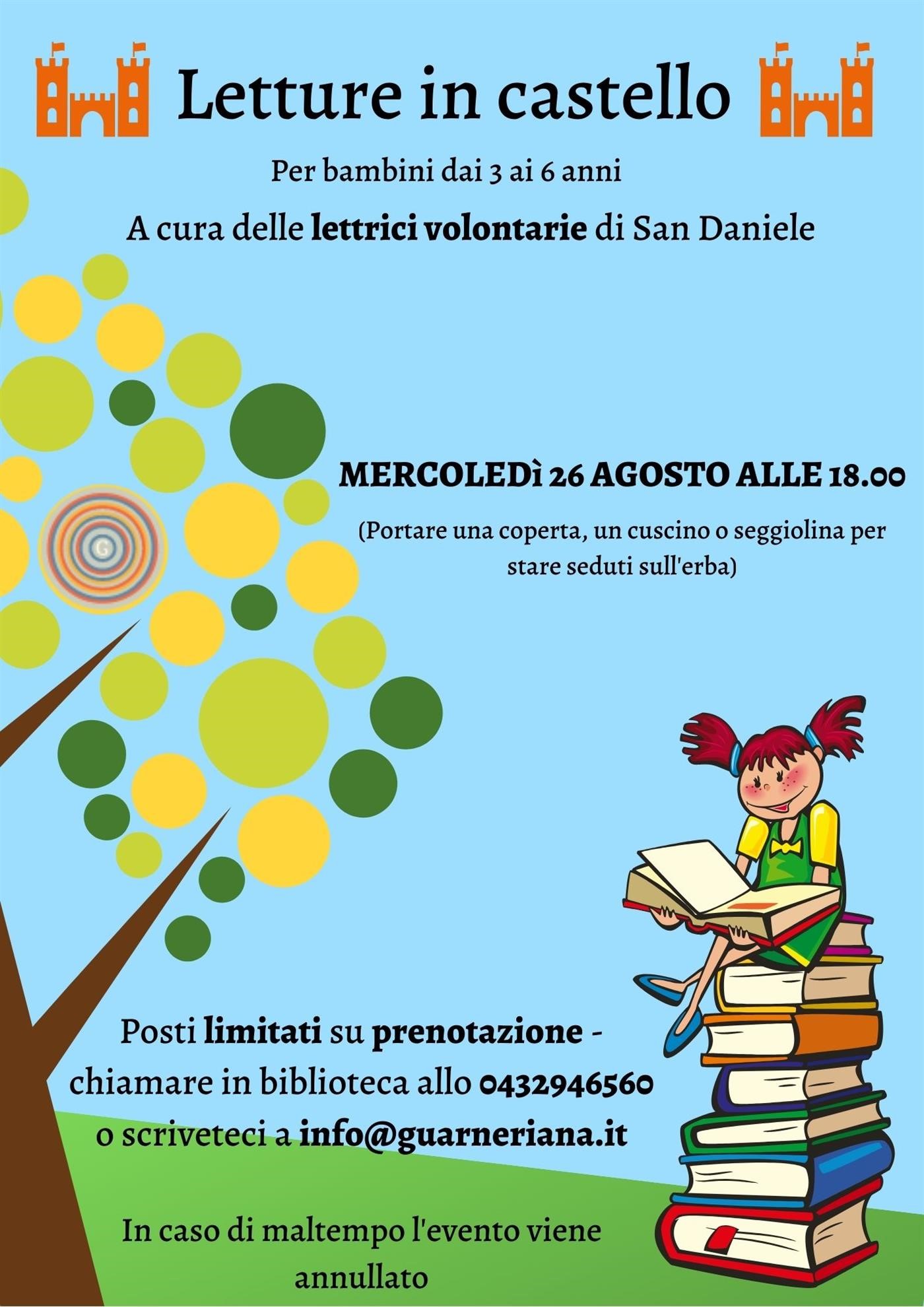 Tante storie per bambini da 3 a 6 anni accompagnati da mamme, papà, nonni ecc. nella splendida cornice del Parco del Castello di San Daniele.