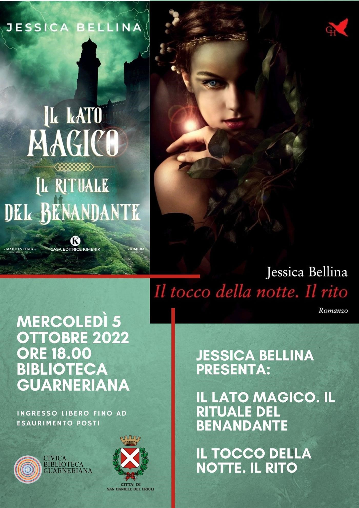 Scrittrice di urban fantasy ambientati in Friuli, la gemonese Jessica Bellina sarà ospite in biblioteca Guarneriana per presentare i suoi libri Il lato magico. Il rituale del Benandante e Il tocco della notte. Il rito, mercoledì 5 ottobre 2022 alle ore 18.00.