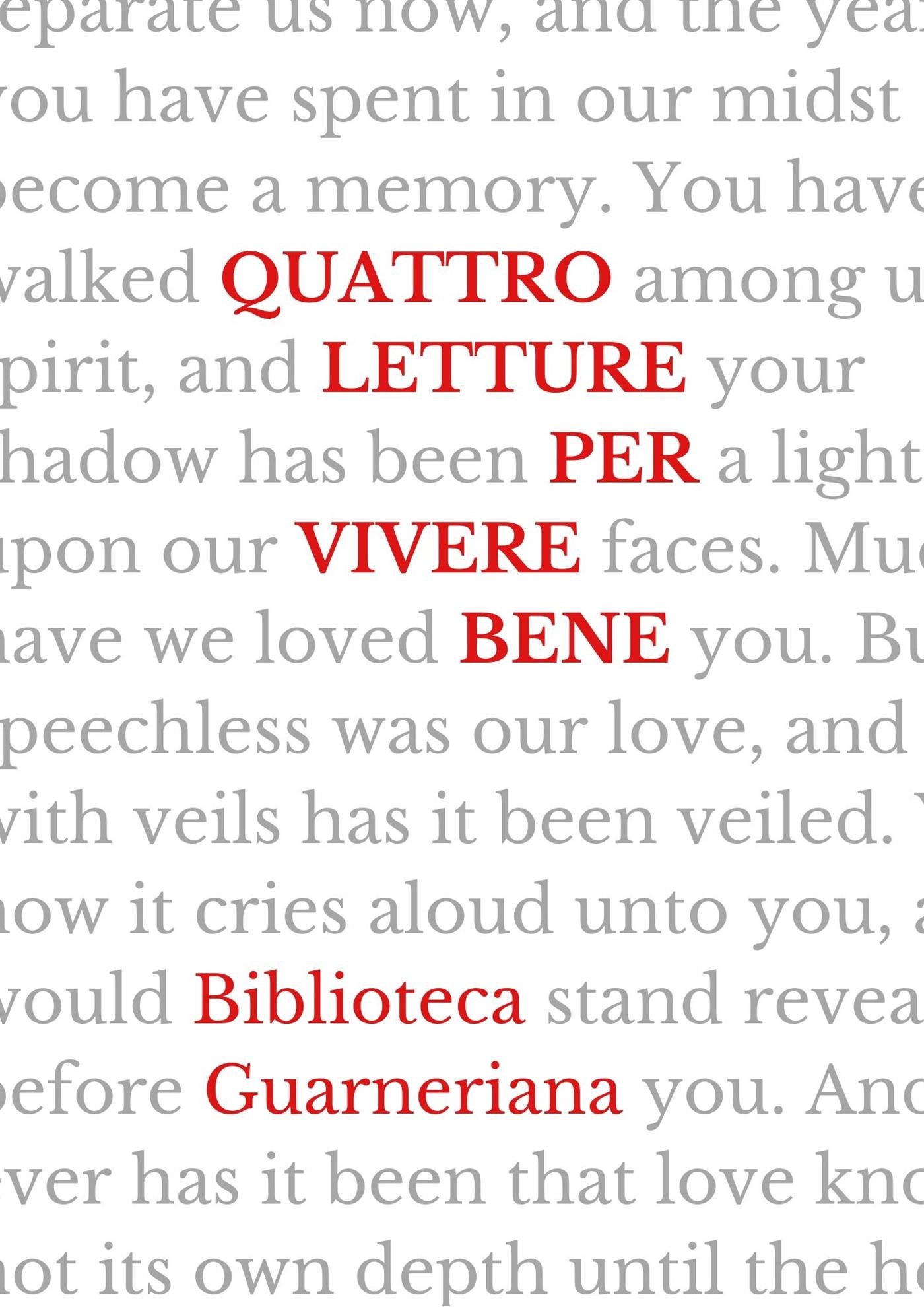 Le letture proposte dal prof. Francesco Pistolato, in quattro appuntamenti dal titolo "Quattro letture per vivere bene", hanno la finalità pratica di illustrare in che modo possiamo renderci artefici della nostra vita, migliorando i nostri rapporti, imparando a trascendere le difficoltà e abituandoci a godere in modo sano dei tanti lati belli della vita.