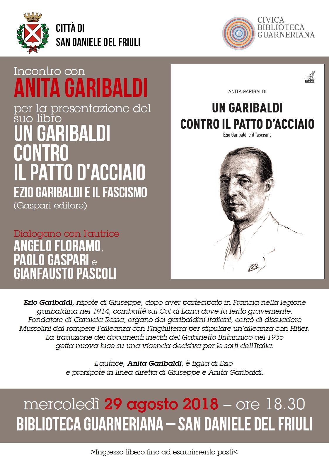 Incontro con Anita Garibaldi per la presentazione, in anteprima, del suo libro "Un Garibaldi contro il Patto d'Acciaio. Ezio Garibaldi e il fascismo" (Gaspari editore, 2018).
