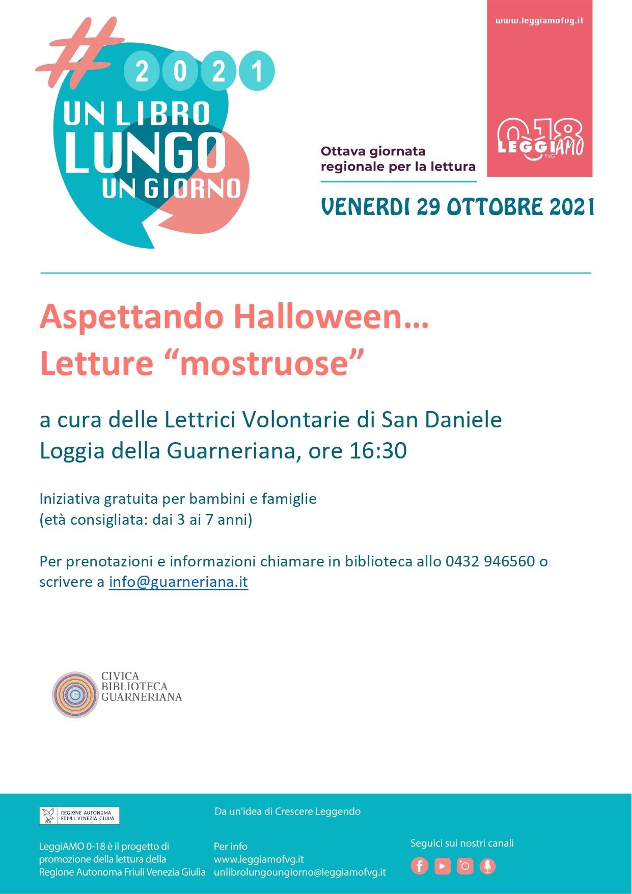 Venerdì 29 ottobre 2021, sotto la Loggia della Guarneriana dalle 16:30, vi aspettiamo per passare insieme questa giornata speciale in compagnia delle "spaventose" letture del gruppo di Lettrici Volontarie di San Daniele.