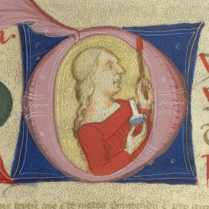 Il codice è splendido per quanto riguarda l’ornato, con iniziali figurate con i busti dei personaggi di cui si parla nel testo, accompagnate da un fregio a foglie e borchie dorate, come a carta 73 recto o come a carta 163 recto.